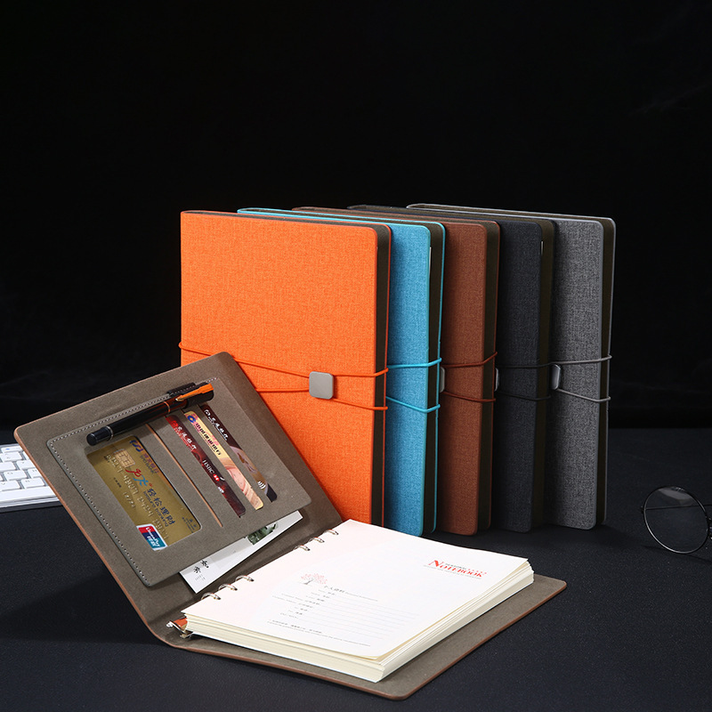 a5松紧带三折活页本b5办公文具创意皮面记事本商务笔记本定制Logo