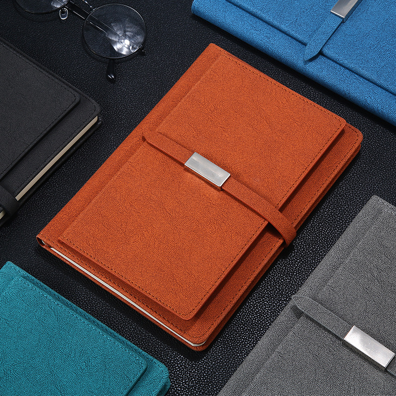 a5商务长条扣带名片夹笔记本子PU仿皮会议记事本礼盒套装定制logo